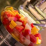 Om morgenen tilbydes gæsterne en buffet på restauranten. En a la carte-restaurant Pompel byder på en menu med amerikansk mad.